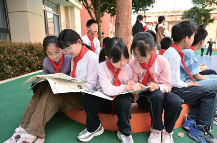 “以前課間休息只有10分鐘,樓上的學生沒時間下樓玩,現在只要下課,大家都興沖沖一起跑下來玩,熱鬧且開心。”小學部校長敖生權介紹,多出來的5分鐘絕不是簡單的數字疊加,學部統籌協調,優化課堂銜接效率,智能統籌活動線,讓學生走出教室,在自然游戲中鍛煉身體、放松心情。