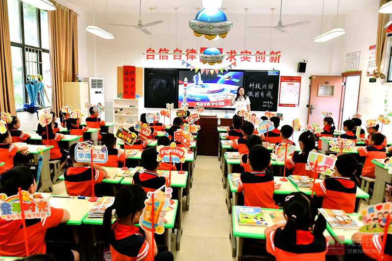 在咸寧市第二實驗小學的開學典禮上,一面紅色的主題墻成為了亮點,吸引眾多孩子前來合影留念。這面墻上,全校學生的名字巧妙地組成了“為中華之崛起而讀書”的巨型字樣,寓意深遠。