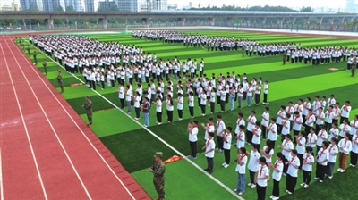 隨著咸寧實(shí)驗(yàn)外國(guó)語(yǔ)學(xué)校本部500余名初一新生步入玉桂校區(qū)大門,結(jié)營(yíng)儀式正式開(kāi)始。在總教官指令下,同學(xué)們以班級(jí)為單位,組成一個(gè)個(gè)整齊的方陣,喊著響亮的口號(hào)。