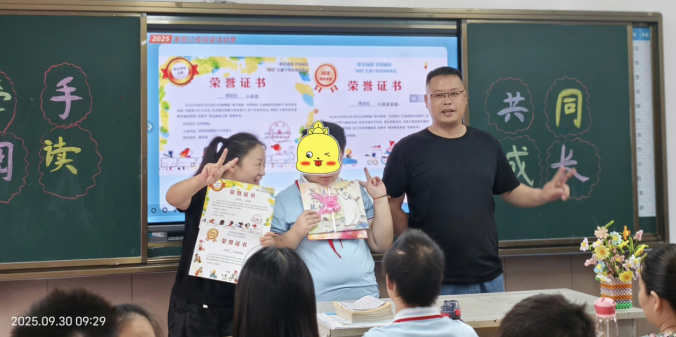 為慶祝這份來之不易的榮譽,分享閱讀帶來的喜悅與成長,“天使班”于9月30日特別舉辦了頒獎典禮暨親子閱讀分享會。教務處石主任作為特邀嘉賓出席活動,與全體參與家庭、教師共同見證這場持續了四年的閱讀之旅結出的豐碩成果。