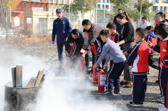 “火盆”點燃,烈焰躥起1米多高。市消防救援支隊官兵現(xiàn)場示范干粉滅火器操作要領(lǐng),邀請家長與孩子輪番上陣。第一次握住“沉甸甸”的滅火器,平時靦腆的陳嘉樹同學(xué)毫不猶豫拔掉保險銷,對準火源根部“掃射”,3秒鐘火焰熄滅,現(xiàn)場爆發(fā)出熱烈掌聲。“回家我也要讓爸爸媽媽把樓道里的滅火器再檢查一遍!”他興奮地說。