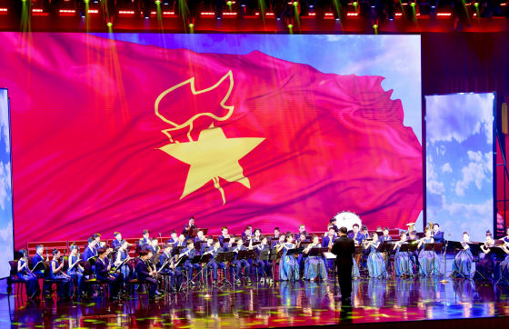 “德潤初心 德育鑄魂”篇章中,中國紅的主色調點燃全場。學生管樂合奏《我和我的祖國》,悠揚的旋律里滿是家國情懷;朗誦《禮贊長津湖,英雄駐我心》,字字鏗鏘,讓英雄精神在孩子們心中扎根。