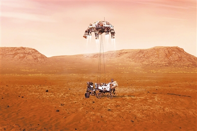 在“天問一號”進入火星軌道不久之后,也就是2月18日,美國國家航空航天局(NASA)的“毅力號”探測器將抵達并著陸火星。如果成功著陸,火星車將在干涸的火山口湖和河床中尋找火星上曾存在生命的證據。“毅力號”還將攜帶一架名為“匠心號”的小型火星直升機,“匠心號”將進行獨立實驗,那就是在火星表面執行第一次動力飛行。這架微型無人機將是人類在另一個星球上試飛的第一架直升機。