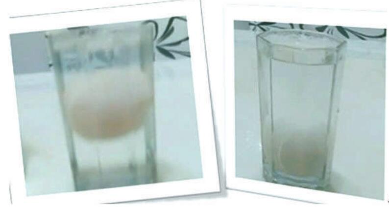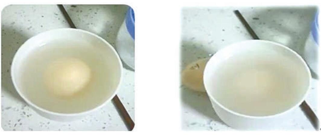 于是,部分同學(xué)有了第二次嘗試。用一個雞蛋,先加鹽使它能夠漂浮起來,然后煮熟后放入鹽水中,觀察現(xiàn)象。
