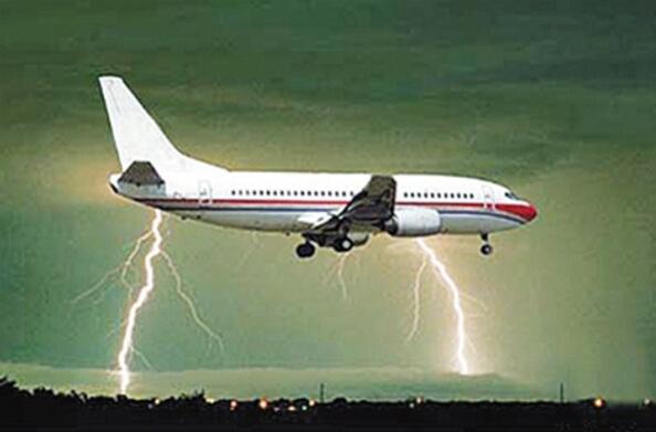 飛機在帶電的雷雨環境中飛行時,一端積累正電荷、另一端積累負電荷,電壓差高到一定程度后,會產生導電的等離子體流,導致飛機更易被雷電擊中。