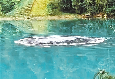 近日,釣魚愛好者劉先生與幾位釣友相約去湖北 恩施咸豐縣清坪鎮龍潭司村釣魚。傍晚7時許,劉先 生突然發現河中央的水面開始冒出乒乓球大小的白色 水泡,于是拿出手機拍攝下了當時的情景。