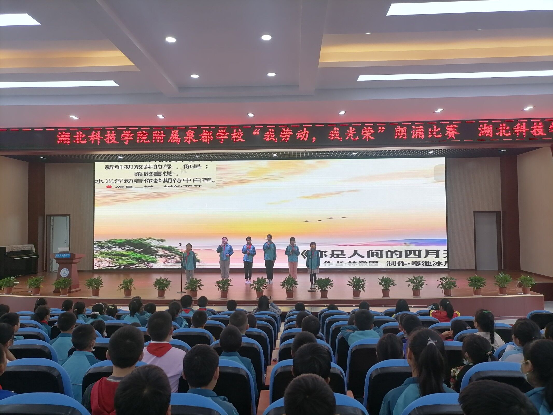 為豐富校園文化生活,全面提高學生品讀、欣賞詩歌的能力,湖北科技學院附屬泉都學校于5月16日下午舉行“我勞動,我光榮”詩歌朗誦比賽。