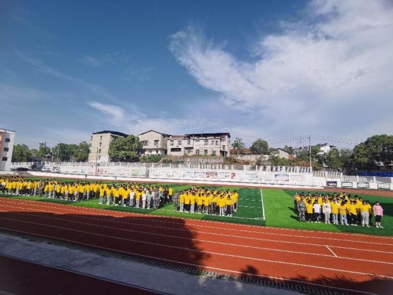 5日,鄂南高中體育場,在飛揚的軍歌和嘹亮的口號聲中,該校2021年新生軍訓匯報表演拉開帷幕。