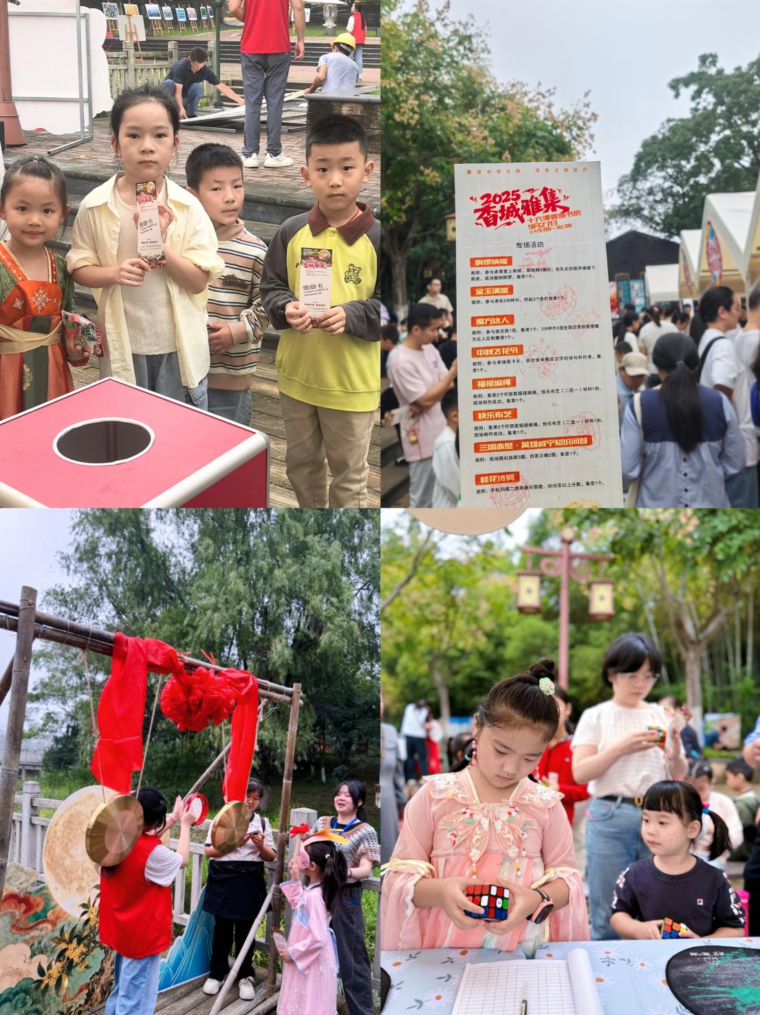 通過咸寧市圖書館工作人員的現場講解,中秋的傳說與習俗變得生動起來。緊接著,孩子們投身于七大主題游戲環節,內容豐富多彩,涵蓋了傳統文化、趣味游戲和手工實踐體驗三大類,具體包括“響鑼納福”“金玉滿盤”“魔方達人”“中秋飛花令”“福祿編繩”“快樂布藝”和“知識問答”七個環節。