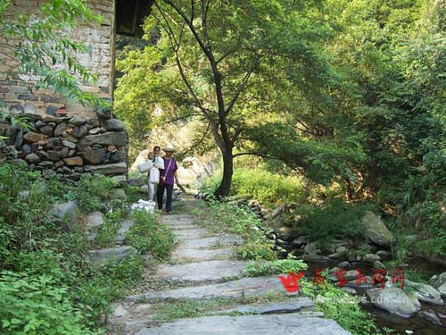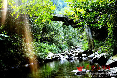 毒辣辣的陽光經(jīng)綠葉的篩透,變得溫暖而沁涼,連林間的蟬叫聲也多了幾分滋潤和慷懶。山高壑翠,彩蝶飛舞,幽靜深隧的山谷時(shí)而傳來鳥鳴聲,清脆婉轉(zhuǎn),清心悅耳,大有唐詩鳥鳴澗中的自然感覺。峽飛巖陡直,兩邊峭壁相擁,儼然天險(xiǎn)。據(jù)當(dāng)?shù)厝酥v,峽飛巖的本義就有“插翅難飛的山巖”之意。正值溪水枯水季節(jié),涓涓溪水隨山勢逶迤而下。遙想雨季山洪奔流直下,一定是氣勢恢宏的景象。
