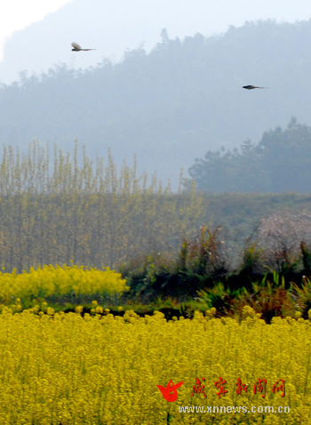 從縣城出發沿著平緩公路半個小時到達高鐵鎮,車進李株港村,郁郁蔥蔥的山花掩蔽著小村莊,顯得格外引人注目,放眼望去,漫山遍野的桃花、李花、油菜花連綿不絕,皎潔如雪,粉紅似霞,黃的若金,幾棟鄉間屋瓦點綴其間,仿佛在層層疊疊的花浪中起舞。游人在花林里穿梭,時而駐足賞玩一親芳澤,時而閉目遐思、吟詠詩詞。攝影師們在花叢間上串下跳捕捉瞬間,為寧靜的花海平添了幾分春意。
