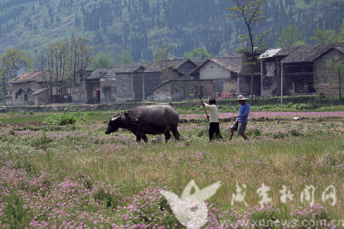 “清明雨漣漣,一年好種田”。鄉村的仲春雖然比城市美千百倍,卻是鄉村最繁忙的季節,農人們牽著牛、扛著犁,忙著播種、移栽,根本無暇顧及迷人春景。或許,他們正以土地作紙,以鋤作筆,在繪一年的好收成吧;或許,他們的眼中有著特別的春景吧。