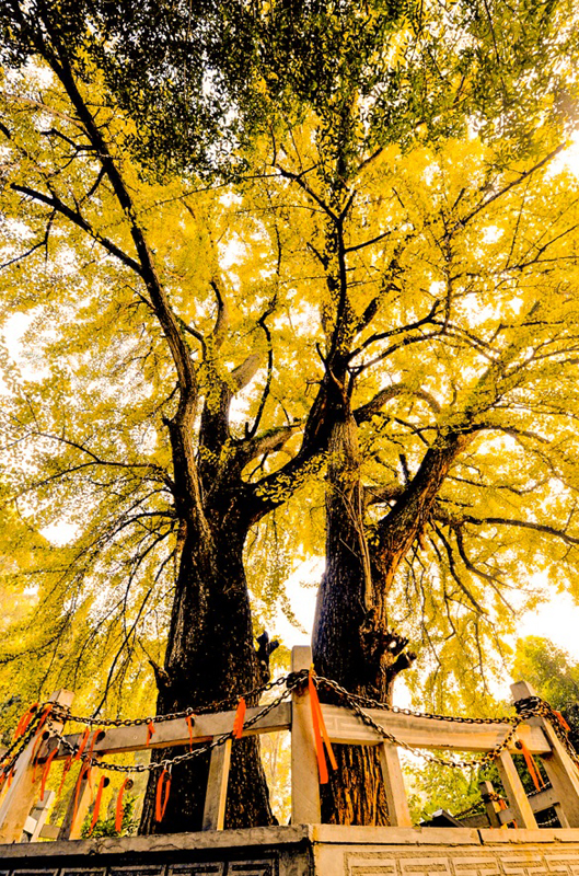 初冬的三國赤壁古戰場里,鳳雛庵淹沒在一片純粹的金黃中。遠處是銅鐘聲聲,耳畔是湖水潺潺,頭頂是縹緲落下的銀杏葉,腳下是清脆作響的自然之聲。