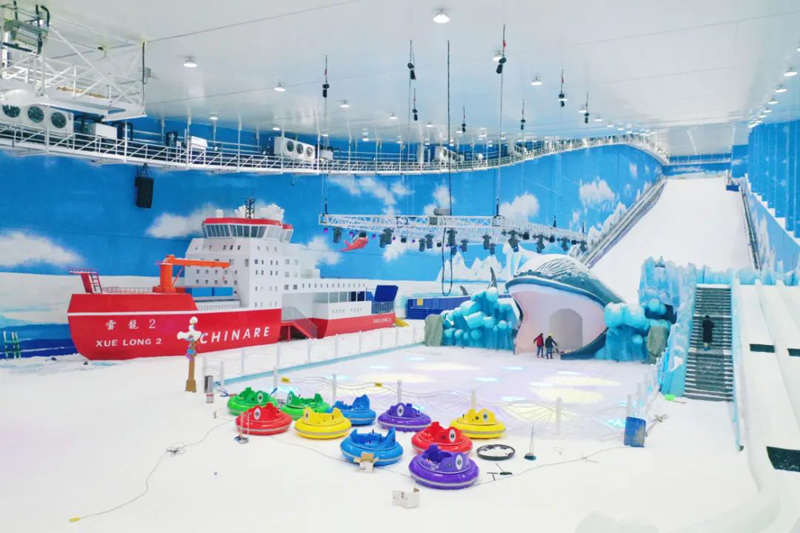 對于沒有接觸過滑雪的游客,滑雪館還為非滑雪游客提供了多樣化的冰雪娛樂項目,包含七彩冰世界、雪龍2號科考船、冰上碰碰車、雪圈道體驗區、冰雪美食體驗區、冰隧道極光秀、夢幻飄雪秀等7項娛雪項目,超多樂趣等你探索。