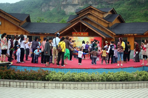 清晨,小朋友在老師的帶領(lǐng)下來到了太乙國際溫泉度假村,首先在溫泉園區(qū)內(nèi)的太乙小食坊觀看了來自廣西的少數(shù)民族的歌舞表演,服飾奇特的演職人員馬上就吸引了小朋友們目光,活動中他們一起載歌載舞,整個舞臺一下就沸騰了,快樂的時光總是感覺短暫,表演結(jié)束后小朋友們?nèi)匀灰猹q未盡地隨著音樂的節(jié)奏扭動身姿。觀看表演后又游覽了咸寧市著名的旅游景點——太乙洞,洞內(nèi)鐘乳倒懸,石筍群立,有太乙神像、劈山寶劍、蘇武牧羊、天賜神鼓、錦銹長城、臥龍池、觀音座蓮、珍珠塔等主要景點48余處。小朋友們一個個都成了“問題小孩”對洞內(nèi)的景物都是那么的好奇,這個是什么,那個又是什么…孩童的天真與可愛盡顯無疑。