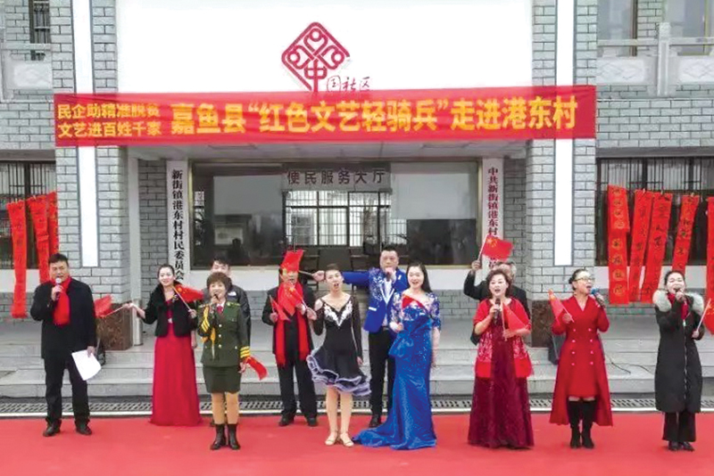 據了解,近年來,嘉魚紅色文藝輕騎兵一直利用多種文藝形式宣傳黨的十九大精神,傳遞黨的聲音和關懷,把最優秀的文藝作品送到群眾家門口,將惠民、為民、樂民的文化服務項目與群眾精準對接,把準地域文化特點和鄉情鄉韻,不斷滿足城鄉群眾精神文化需求。
