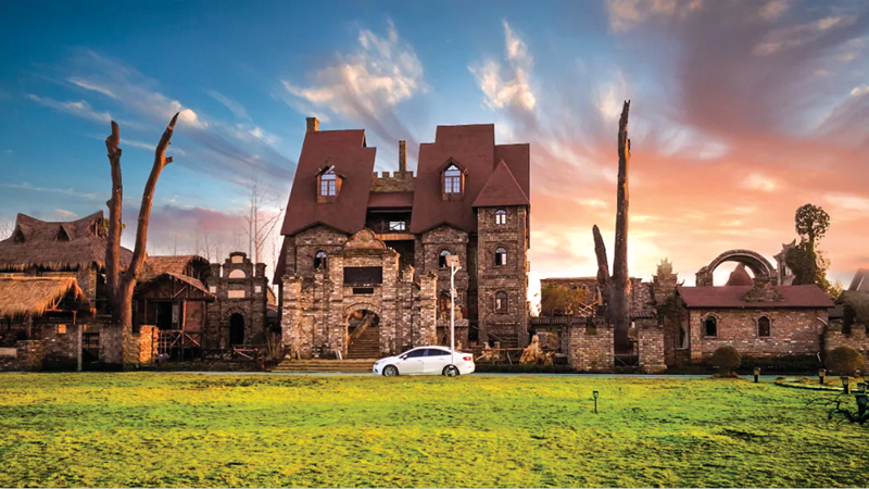 光年城堡莊園位于嘉魚縣新街鎮曬甲山村,全部采用老磚建造,使用了嘉魚本土的五十萬塊百年老青磚和三千余條青石板以及大量巨型陰沉金絲楠木。城堡參照四象和五行,每個布局都有故事,將中國易經的風水文化與西方建筑學完美融合,打造出歐式風格,莊嚴中略顯神秘。