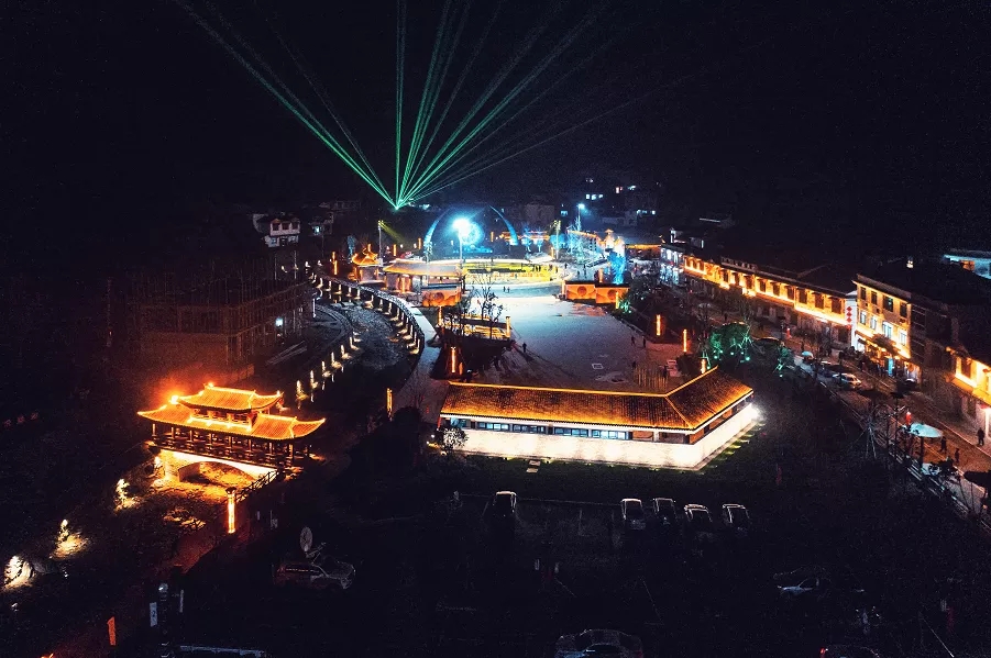 如果去過內沖瑤族村的人,一定忘不了瑤望千年廣場上篝火,充滿古瑤特色的《拍打舞》將廣場的氣氛推至高潮。周末廣場上的燈光秀五彩斑斕,隨著音樂的節奏跳動閃爍,所有人跟著律動舞蹈。