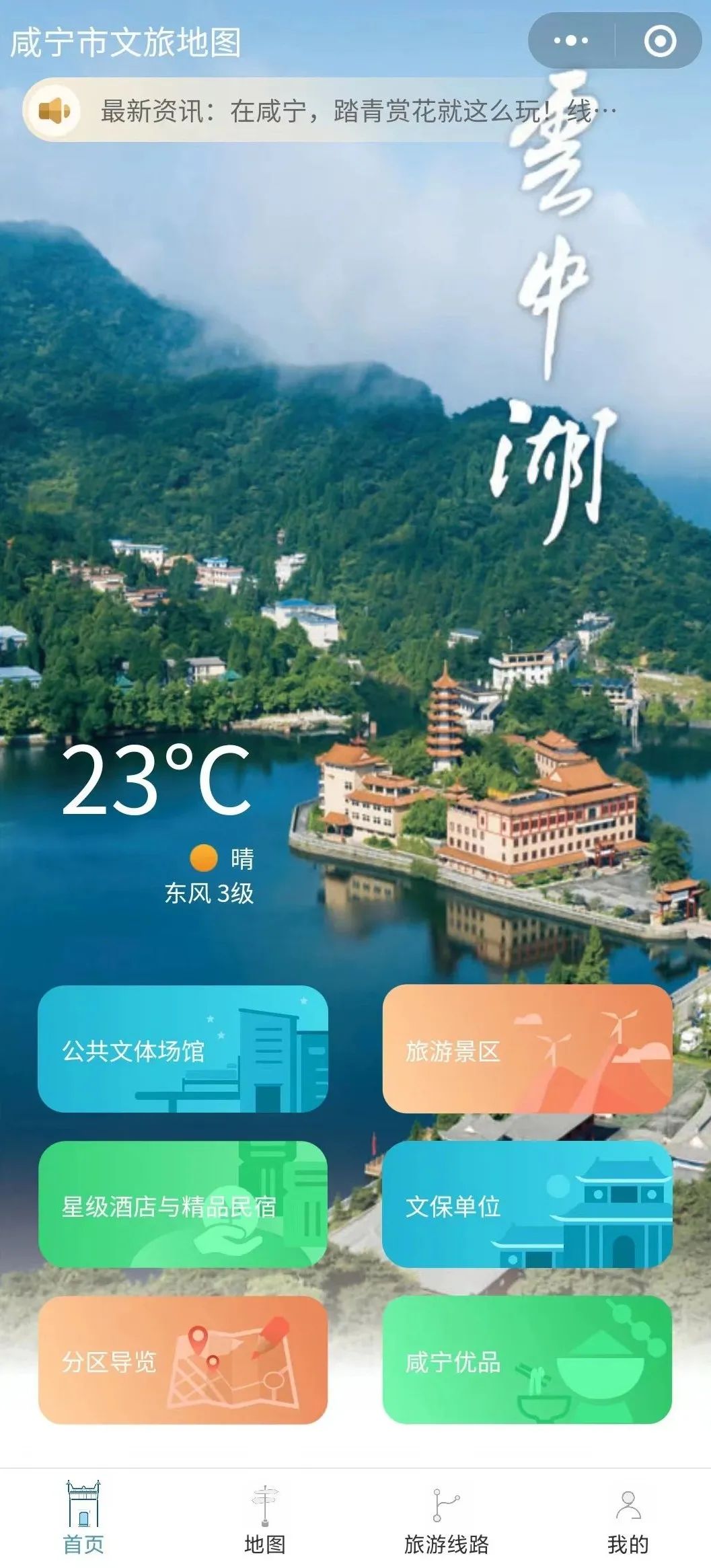 小程序內(nèi)提供有“咸寧文旅電子地圖”和“旅游線路”兩大服務(wù),提供全市公共文體場所、旅游景區(qū)、星級酒店與精品酒店、文保單位的多維度導(dǎo)航導(dǎo)覽服務(wù)以及應(yīng)季應(yīng)景旅游線路推薦。