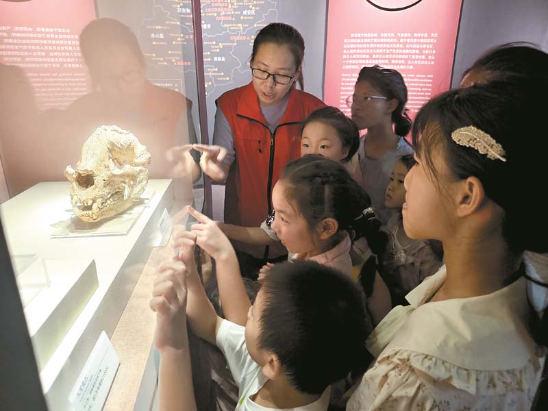 7月16日,記者走進(jìn)咸寧市博物館,這里擺放著眾多咸寧出土的寶物。更新世大熊貓頭骨化石展臺(tái)前,眾多文物愛(ài)好者正拿著手機(jī)拍照。解說(shuō)員在旁邊講述著關(guān)于更新世大熊貓頭骨化石的故事。