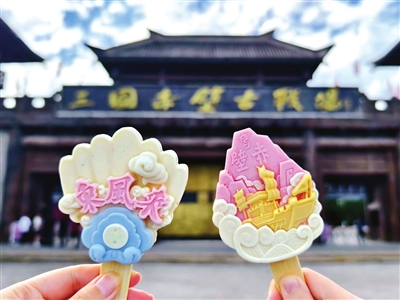 景區(qū)工作人員馬楊姍介紹道,這兩款雪糕造型元素分別取自“赤壁之戰(zhàn)”和“借東風”的歷史故事,是景區(qū)文創(chuàng)產(chǎn)品開發(fā)項目的一部分。