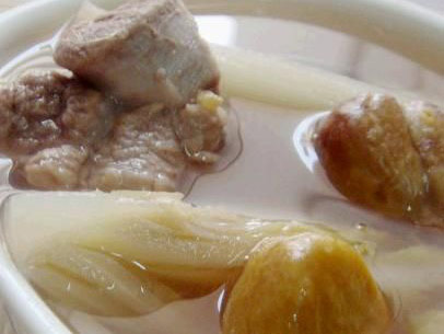 排骨半斤、栗子250克、白菜心兩棵、瑤柱30克、姜一塊