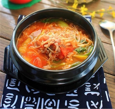 近期喉嚨有些不舒服,不能吃太辣的重慶小火鍋,打算做一個(gè)酸甜爽口的番茄金針菇肥牛鍋。準(zhǔn)備番茄兩個(gè),金針菇一把,新鮮的肥...