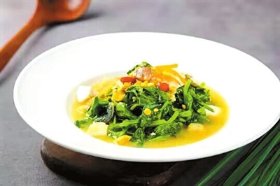 “上湯蔬菜,吸滿湯汁超好吃。”餐桌旁,不愛喝湯的侄子,嘗過這道菜后,直呼要再來一碗。