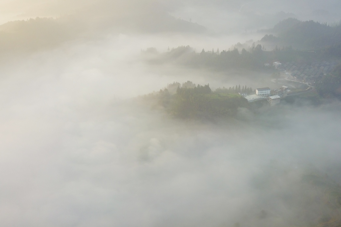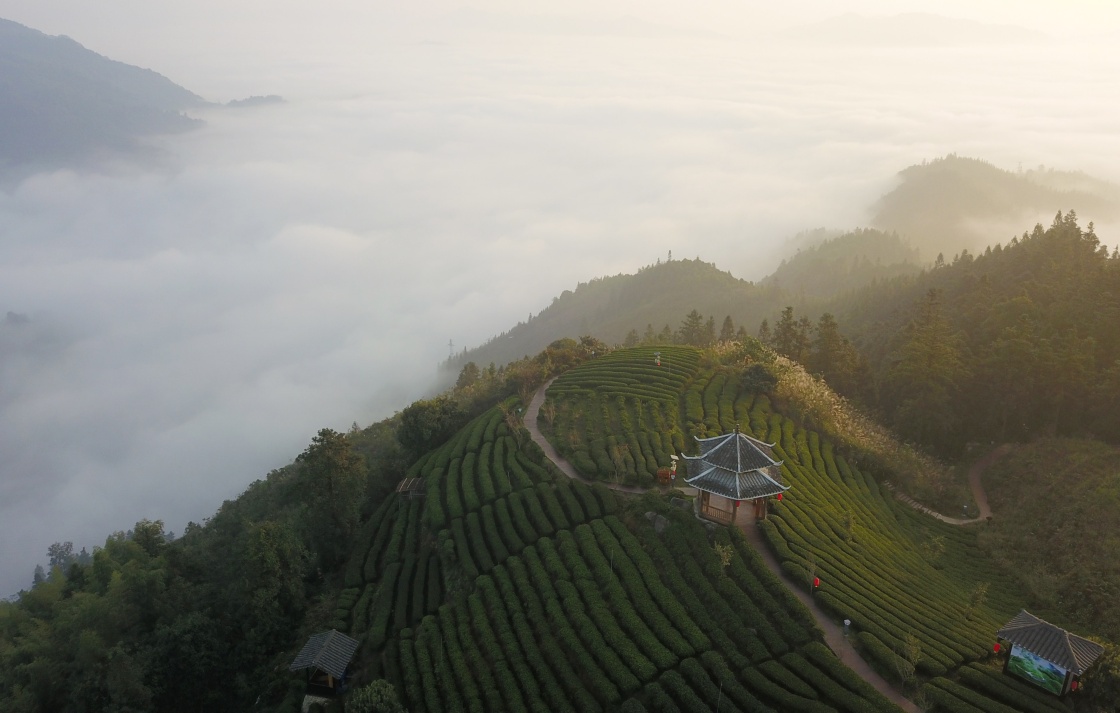 11月23日拍攝的廣西柳州三江侗族自治縣八江鎮布央村茶園(無人機拍攝)。