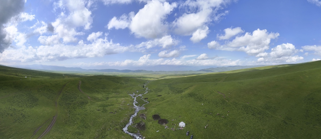 這是6月11日在新源縣那拉提草原拍攝的巴拉提江家的夏牧場。