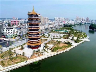近年來,通城縣政府不斷加大投入,推進綠色生態家園建設,雁塔休閑廣場便應運而生,于2018年建成。我仰頭看看雁塔,新建七層的雁塔高聳入云,彩燈輝煌,又低頭看看雋水河中瀲滟的燈光,綠意蔥蔥的廣場,成千上萬的休閑人群,真的是雋溪秀水舞于雁塔之下,城鎮居民盡興于廣場之中。