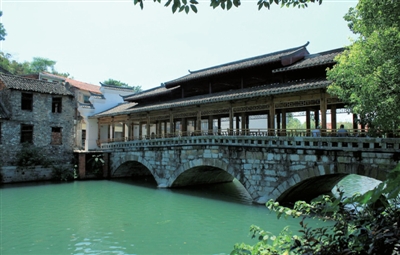 整個橋門形狀酷似從前南方的老式房屋的正門,外地人一上橋頭,恍若走近一座古老的宅第。