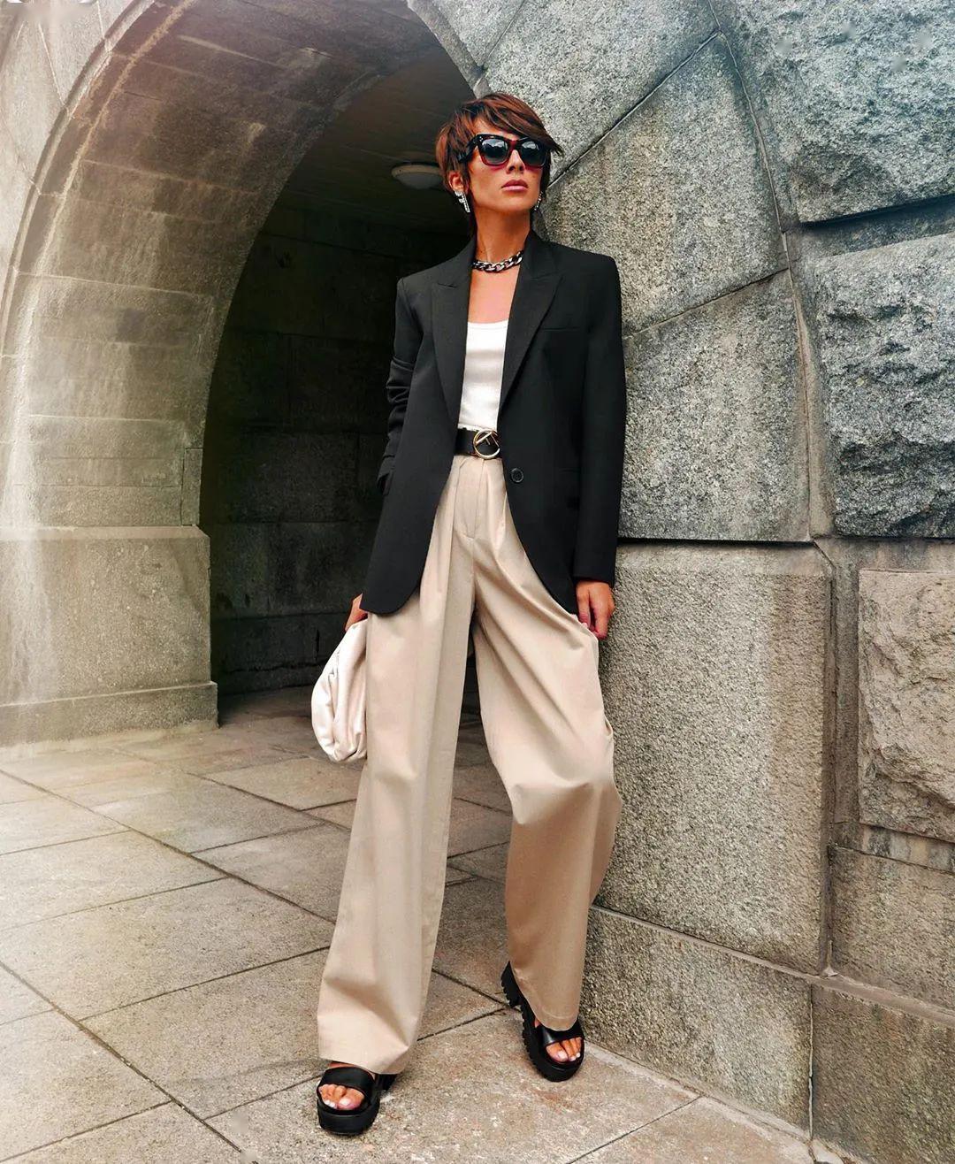 寬松的闊腿褲既拉風又可以修飾腿型。