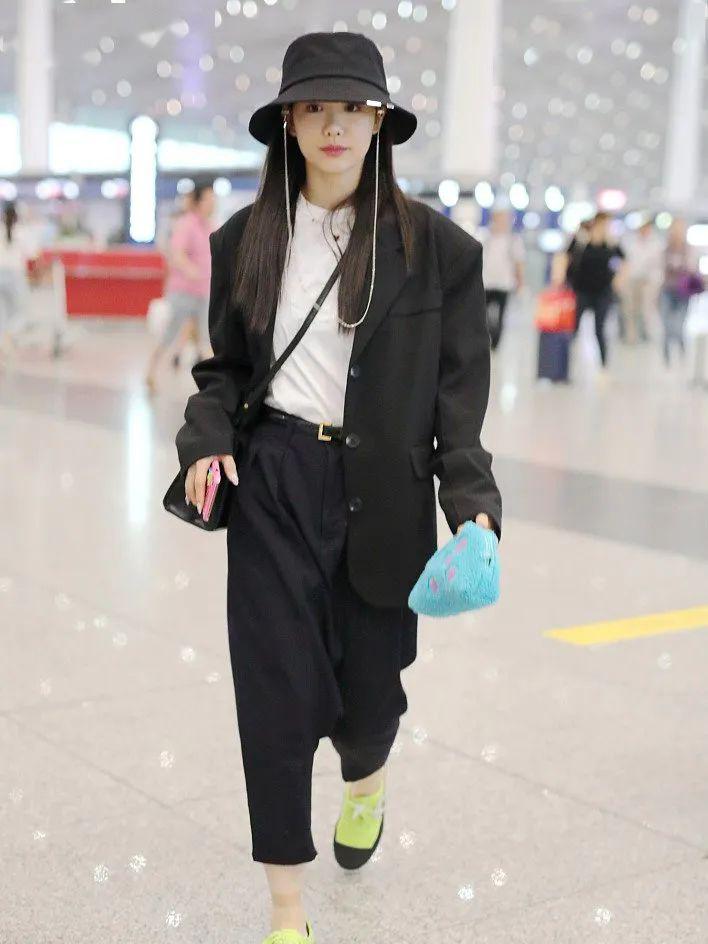 關曉彤近日以全黑LOOK現身某機場,意外被媒體捕捉到了她的身影,黑色的西裝外套+闊腿褲再配上鏈條漁夫帽,造型的個性感很強,...