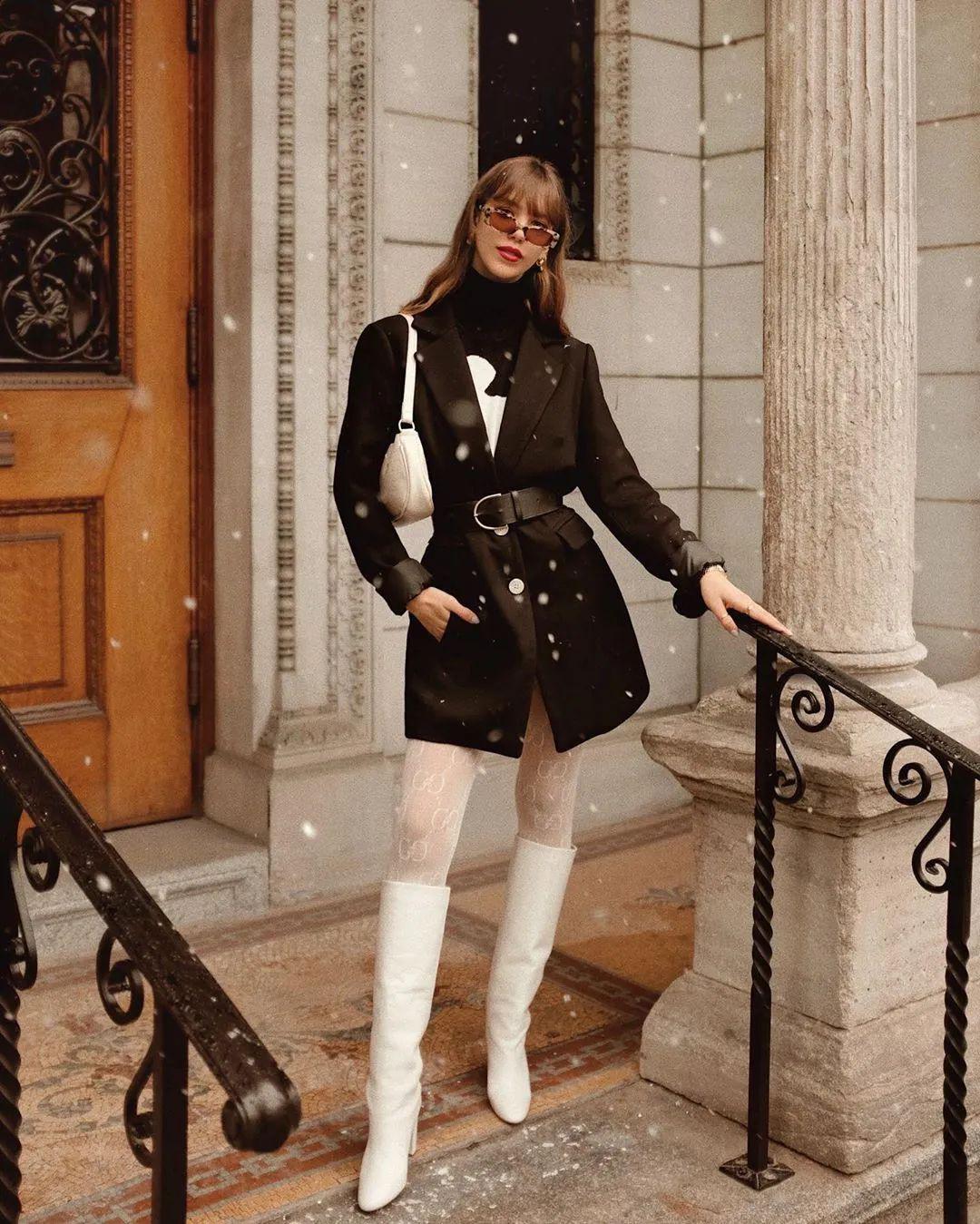時髦精的耍帥法寶——及膝靴,結合下衣失蹤法,打造超靚街頭風。