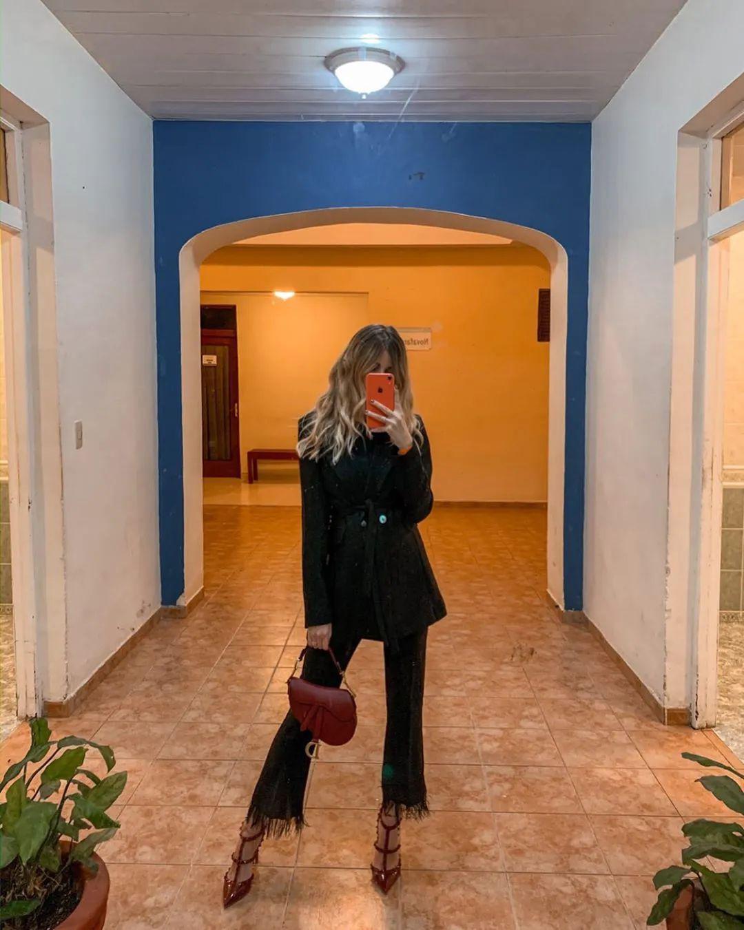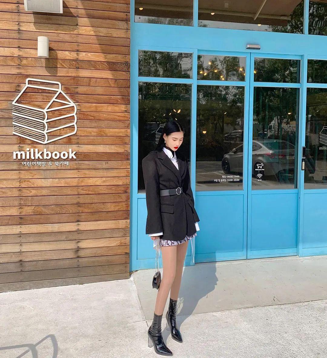 黑色西裝本來就顯瘦,再配上小黑褲,顯瘦指數max。