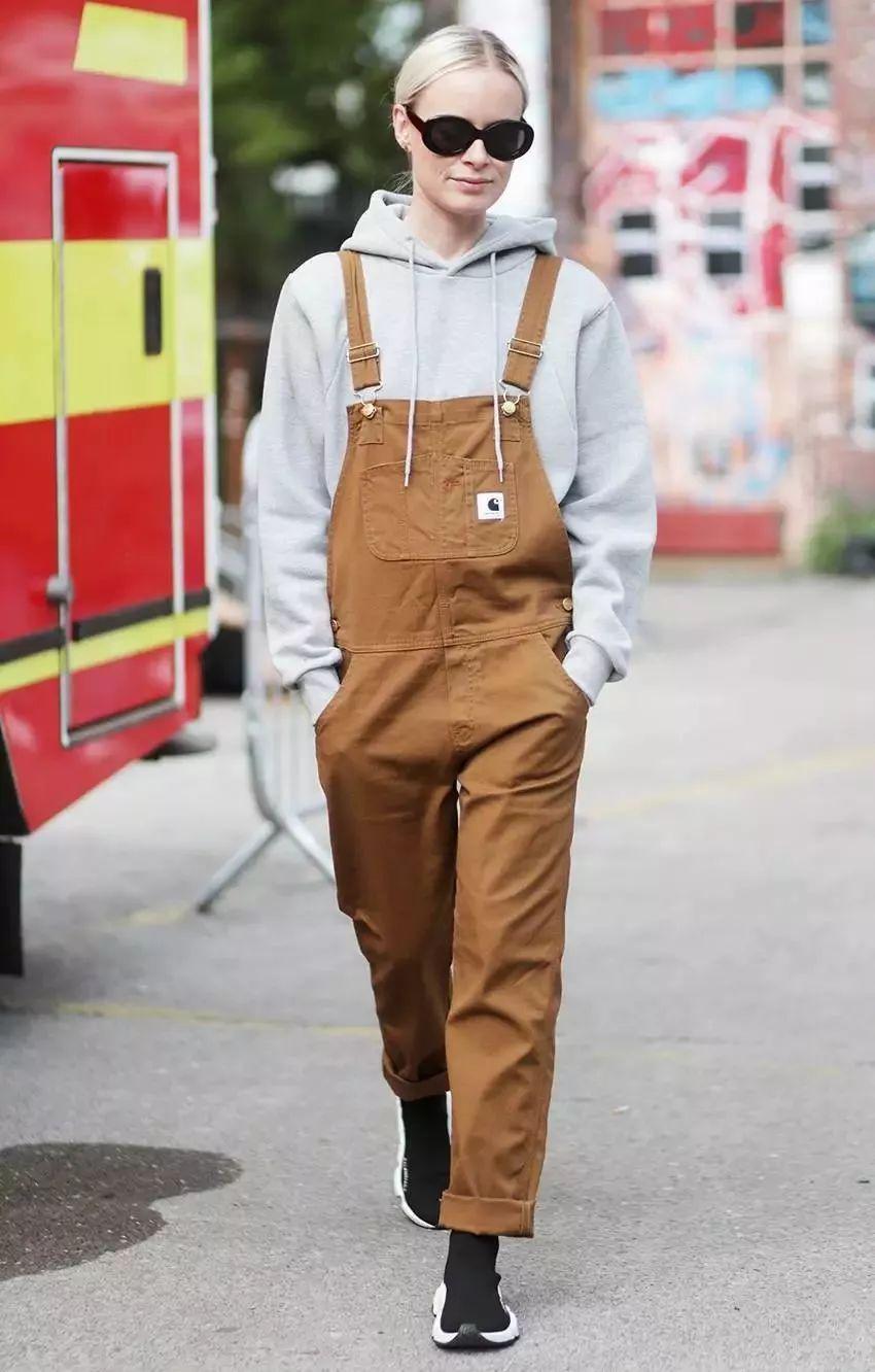 背帶褲其實已經有一段歷史了。它的原形其實是工裝褲,早前是男人們的“作業褲”,胸前擋布阻臟又遮肚子。