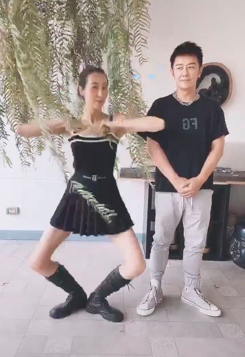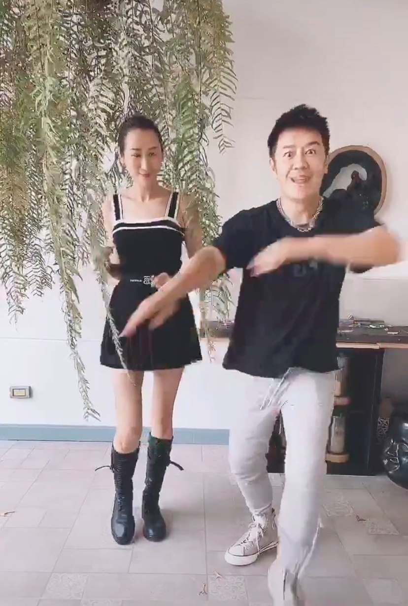緊接著陳浩民又往前走,做出同款動(dòng)作,夫妻倆你來我往,配合得分外默契。
