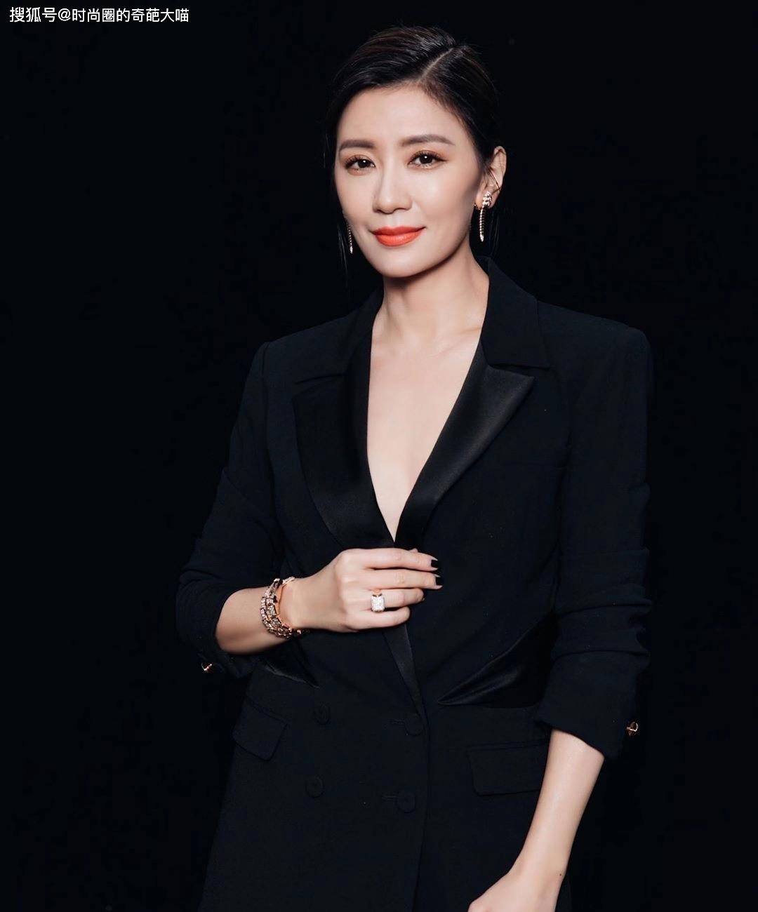 當(dāng)然,畢竟也已經(jīng)45歲了,自然是少不了成熟霸氣的御姐風(fēng)造型啦。省去內(nèi)搭后的真空西裝造型,素黑上鏡酷勁十足。精致的妝容和小配飾,都讓造型盡顯精致細節(jié)。膚白貌美氣勢滿滿,難怪直至今日還是如此有女神感啦。