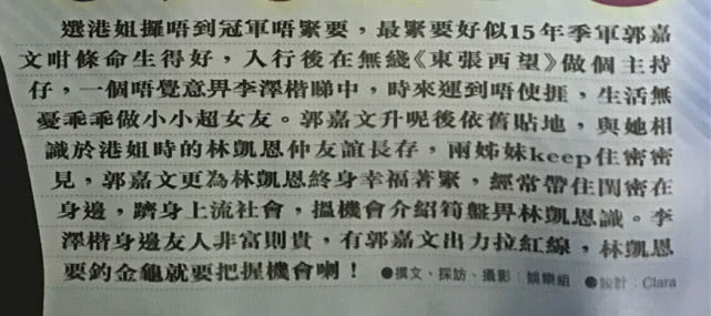 選完港姐不久,郭嘉文就結識了李澤楷,只等與TVB約滿即離開公司退圈,安心當全職女友。