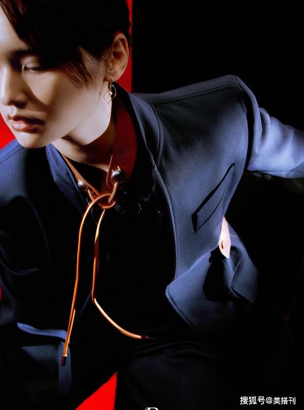 雖然以往的楊丞琳也經常嘗試西服套裝的造型,不過這一次卻感覺完全不同,很少見楊丞琳有這么中性風格的裝扮,一件中山裝衣領的西裝外套款式,內搭棕色系印花皮領襯衫,這個襯衫領的抽繩設計未免也太有小心思了,正式中又帶著一點點痞里痞氣的感覺。