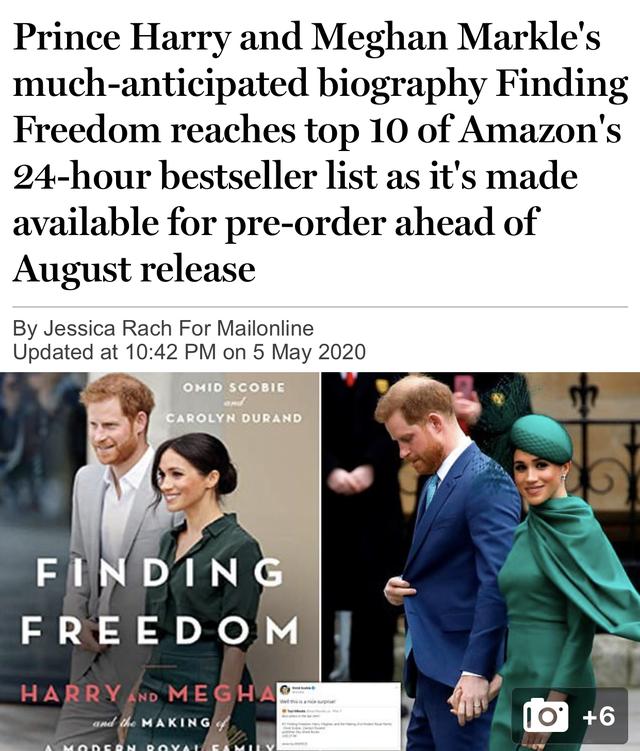 盡管外界罵聲一片,但是在北京時間5月5日晚上10點左右,《每日郵報》報道梅根的這本自傳在出來后,立刻登上了亞馬遜24小時暢銷書排行榜TOP10,線上預訂人數爆滿。