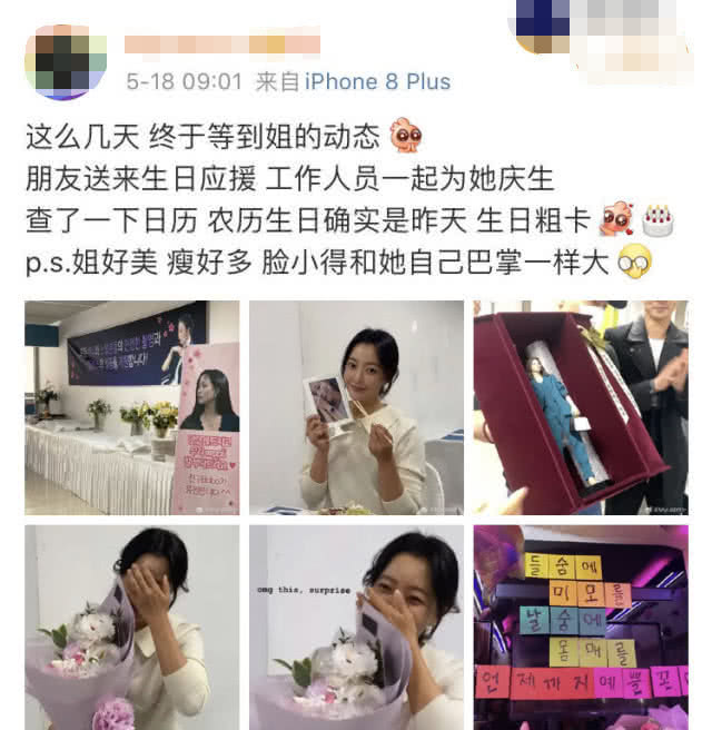 正在劇組拍戲的金喜善除了收到各方好友和粉絲的祝福外,還有好友送來(lái)了生日應(yīng)援食物,工作人員在劇組一起為她慶祝生日,讓她驚喜不已。