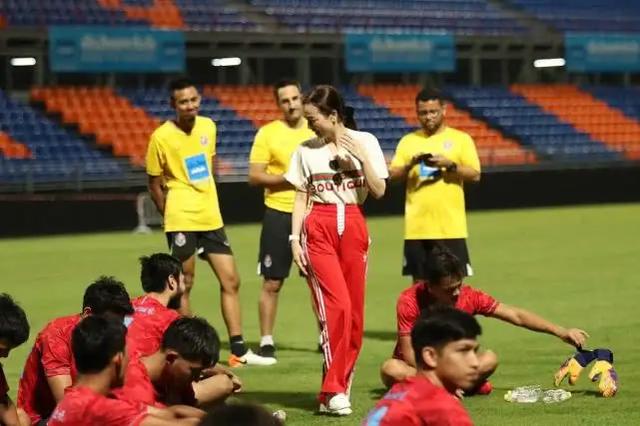 當地時間6月8日,泰國富婆伍倫盼(Nualphan Lamsam)分享了一張她在綠茵場上的照片。照片中伍倫盼穿著GUCCI的白色短袖,搭配了一條紅色的運動褲,還戴著黑色墨鏡,站在眾多男性運動員的中間。