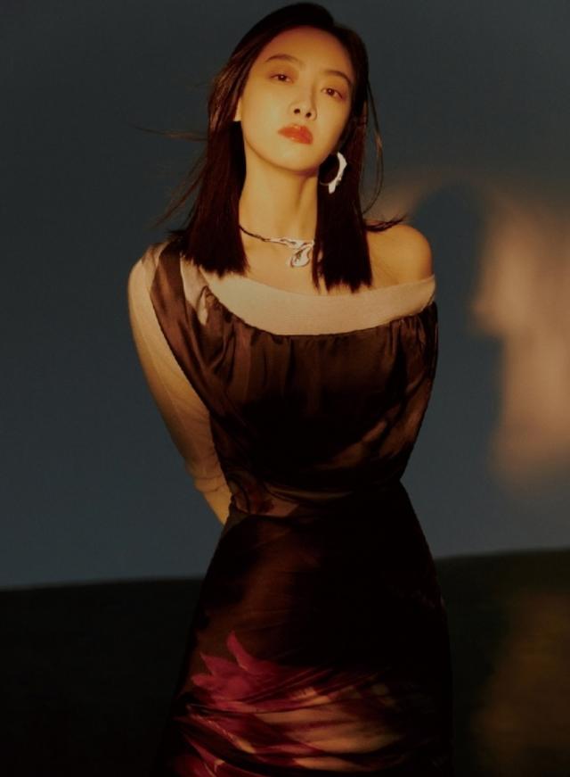 宋茜身穿著酒紅色的連衣裙,超修身的剪裁凸顯出了她凹凸有致的好身材,一字肩的設計展露出她漂亮的鎖骨線條,脖子上搭配一條銀色的項鏈,恰到好處的凸顯了性感與精致的味道,披散著一頭長直發,又有些溫柔的氣息,迷離的眼神讓人感覺特別文藝。