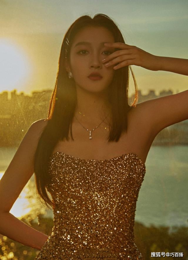 關曉彤側身人體二分之一的比例入鏡,映入眼簾的就是她“妖艷”的身材,緊身抹胸開叉裙凹出身材線條美,在觀測不到具體細節的時候輪廓就會在人們眼中無限放大,凹凸有致的線條美比正面打光來得更出其不意,和波光粼粼的湖面相呼應的是她身上這款金光閃閃材質的開叉裙,在光線不充足的情況下也依舊能抓人眼球。