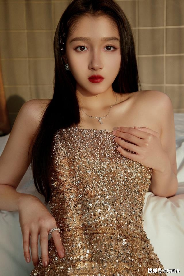 看到這張清晰的正臉照你會有一種撥開云霧見月明的感覺,因為昏暗的側影給人帶來了較高的期待值,所以當正面公開之后的美又恰好超過你的預期時你會感到特別欣慰。坐在床下雙肘撐床的拍照姿勢有種“王之藐視”的氣勢,霸氣十足,雖然關曉彤的臉部線條和妝容并沒有太大的殺傷力,但是這也阻擋不了她散發強烈的女人味。