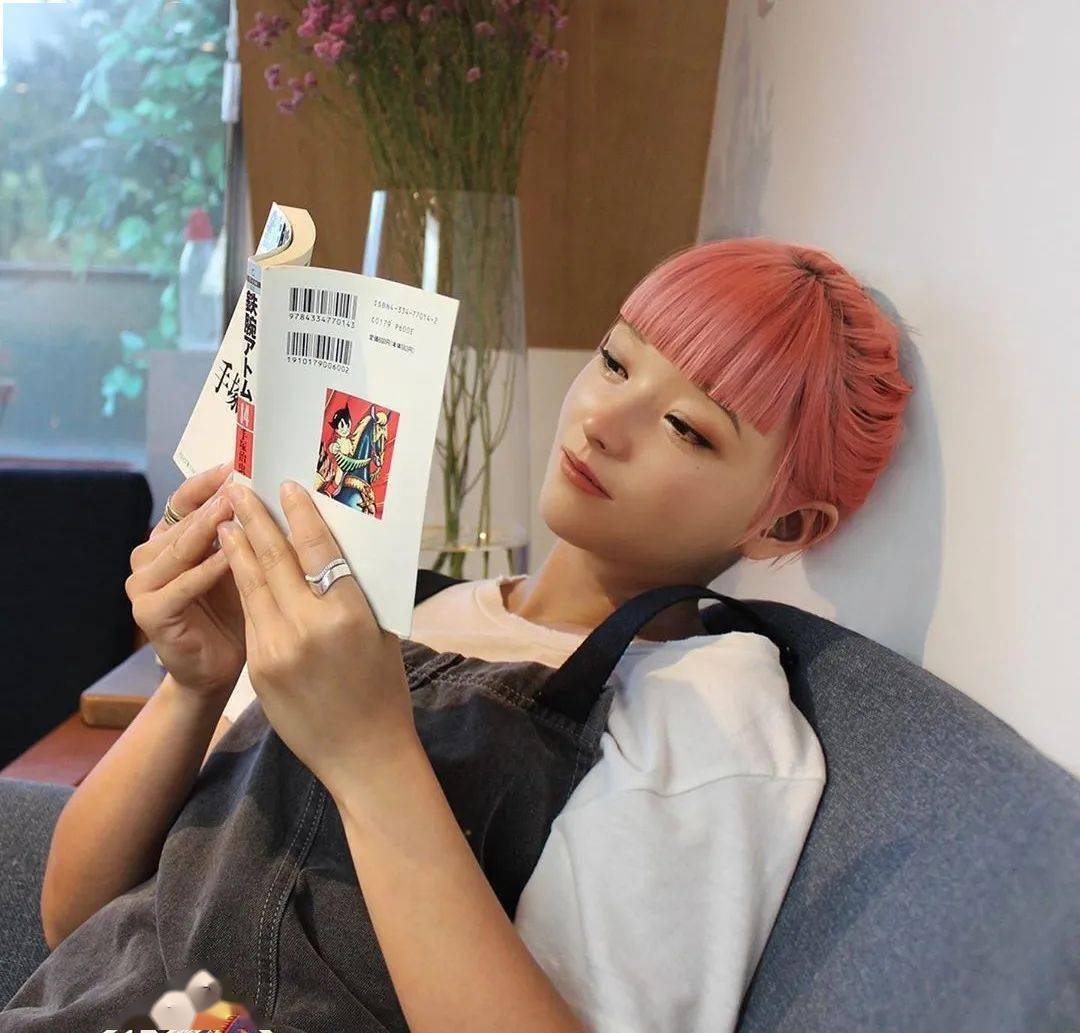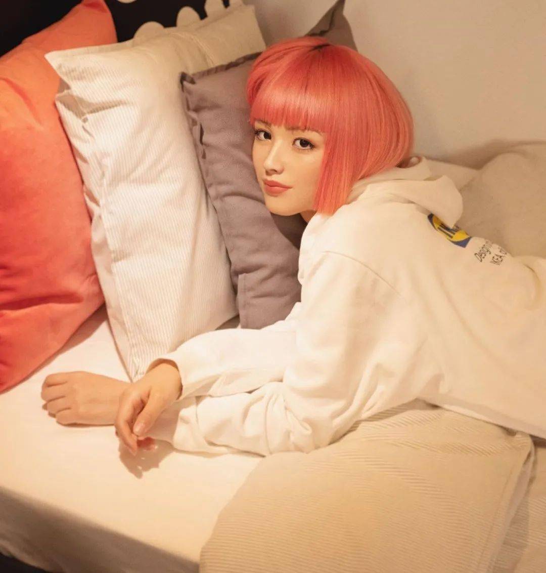 糖果色的頭發(fā),精致的五官,乖巧的神態(tài)。