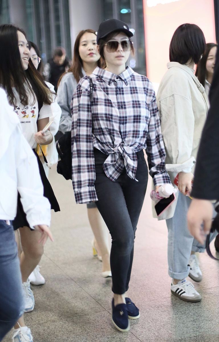 格子的衣服搭配一條黑色的褲子,雖然很簡單,但是張靚穎出門都不怎么化妝,顯得很沒有氣色啊。跟現在比起來,完全就是差別很大的,就像換了一個人。