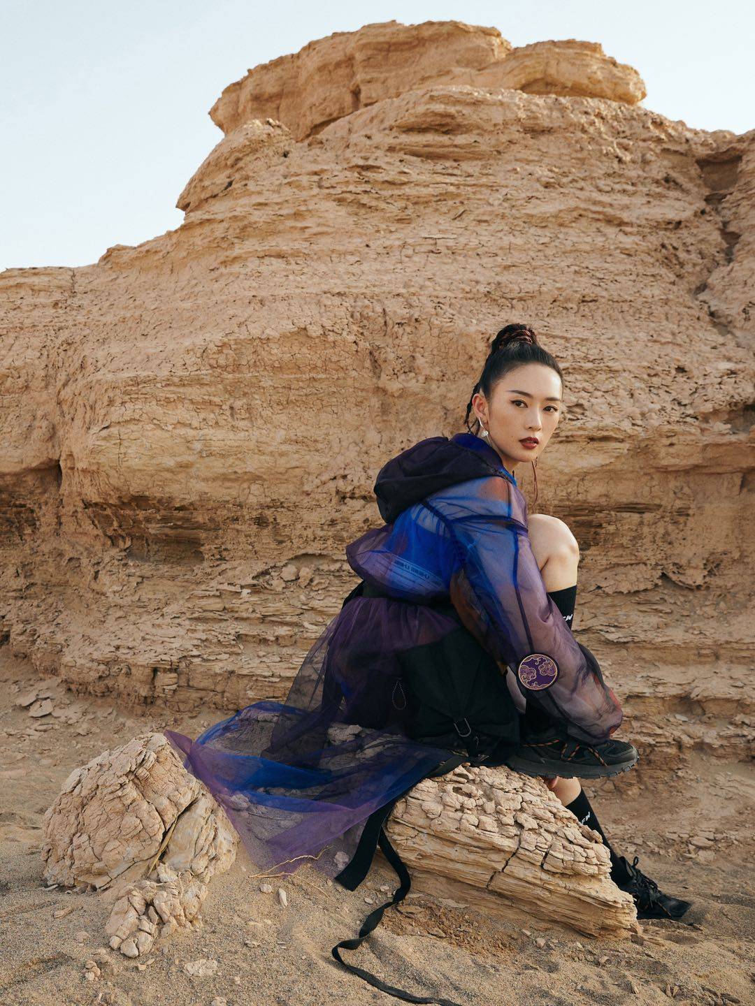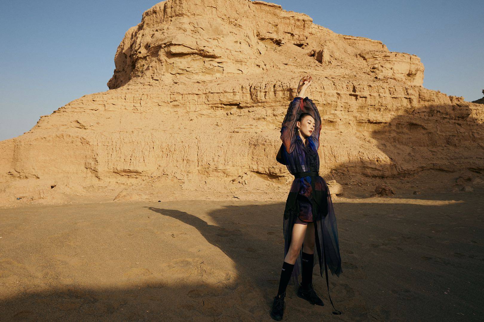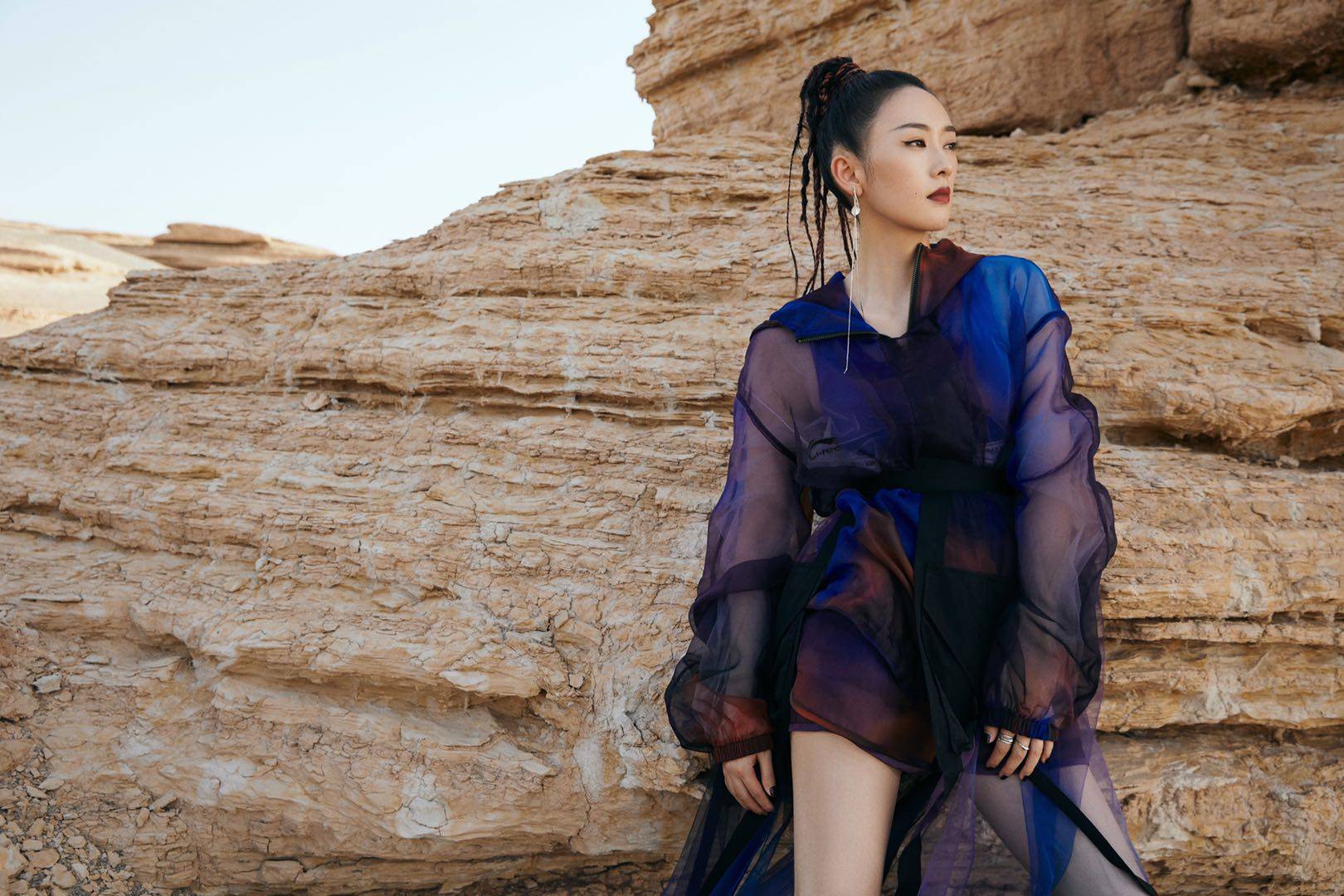 童瑤身著李寧運動女裝 拍攝戈壁時尚大片!